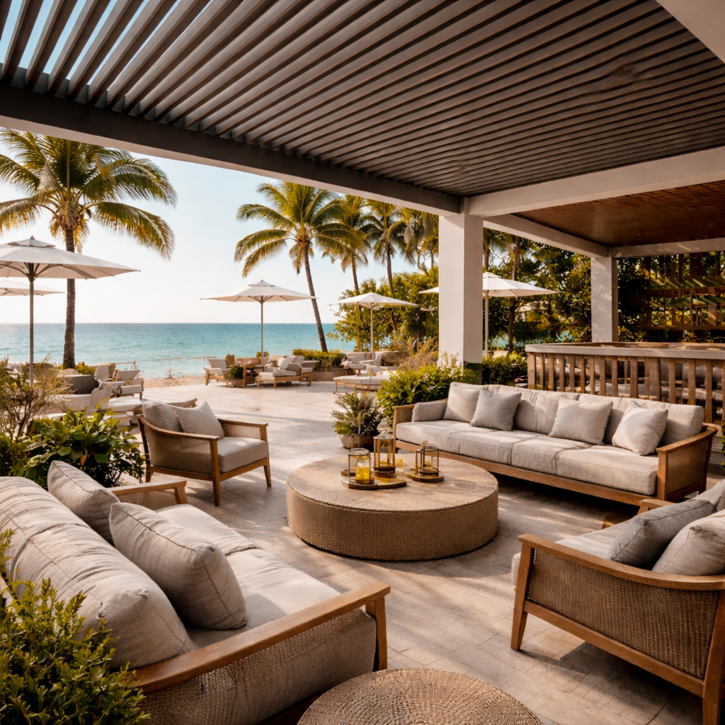 Esta composición la hace altamente resistente a climas extremos, incluyendo sol intenso, lluvia, nieve y temperaturas elevadas. Ideal para terrazas, jardines, áreas de piscina y otros espacios exteriores.