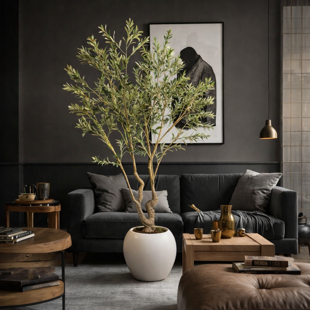 Aporta elegancia natural a tus espacios interiores con este árbol de olivo realista. Incluye maceta artesanal y ramas moldeables para personalizar su apariencia. Su tronco y ramas pintados a mano ofrecen una textura auténtica, complementados por tierra artificial de aspecto natural.