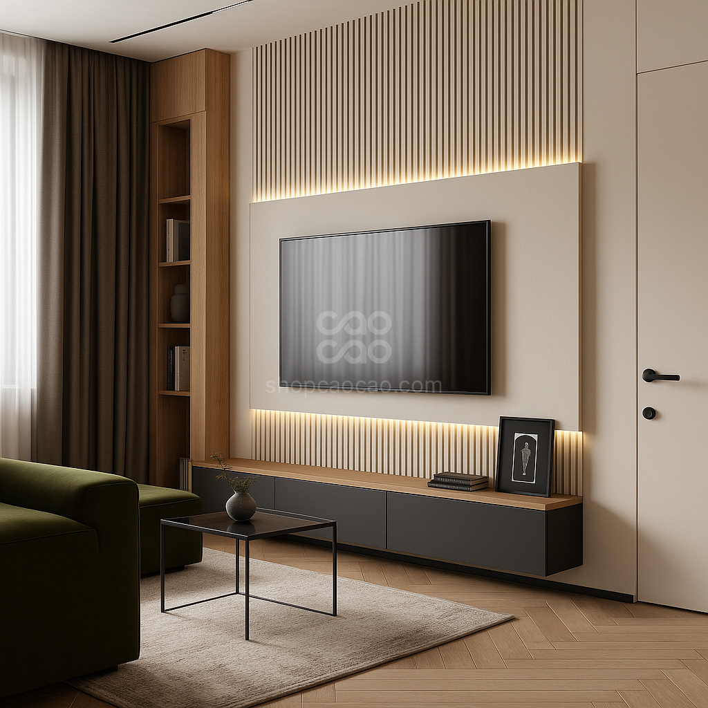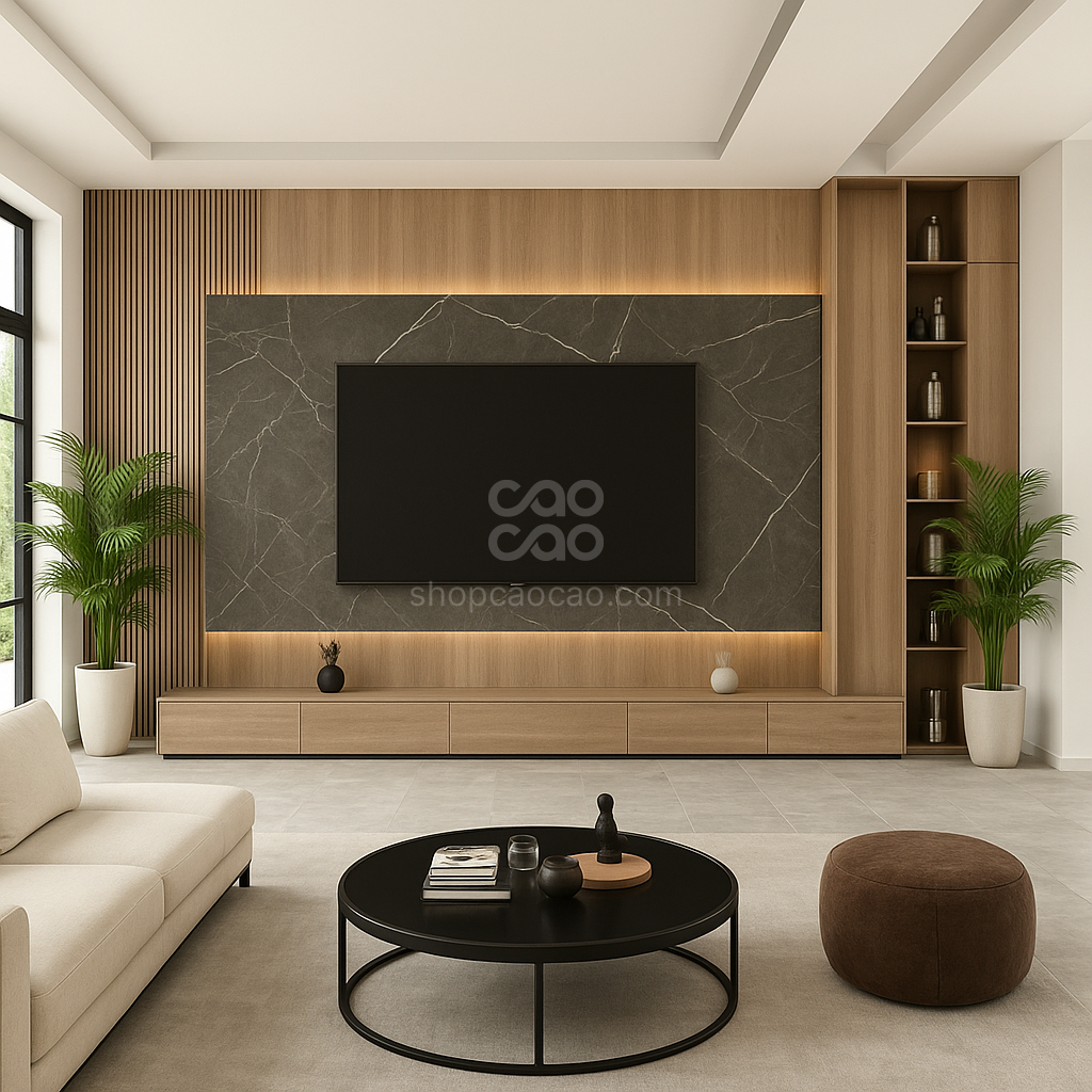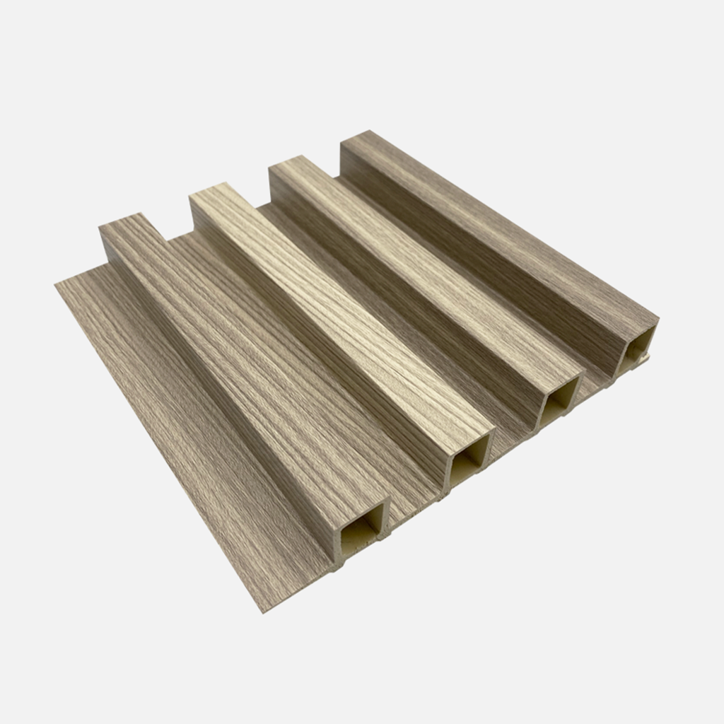 Lambrín de Interior. El panel WPC para interiores está compuesto por un 60% de resina de madera y un 40% de PVC, y está acabado con un revestimiento de alta calidad que ofrece texturas realistas y colores sólidos para adaptarse a cualquier estilo de decoración.
