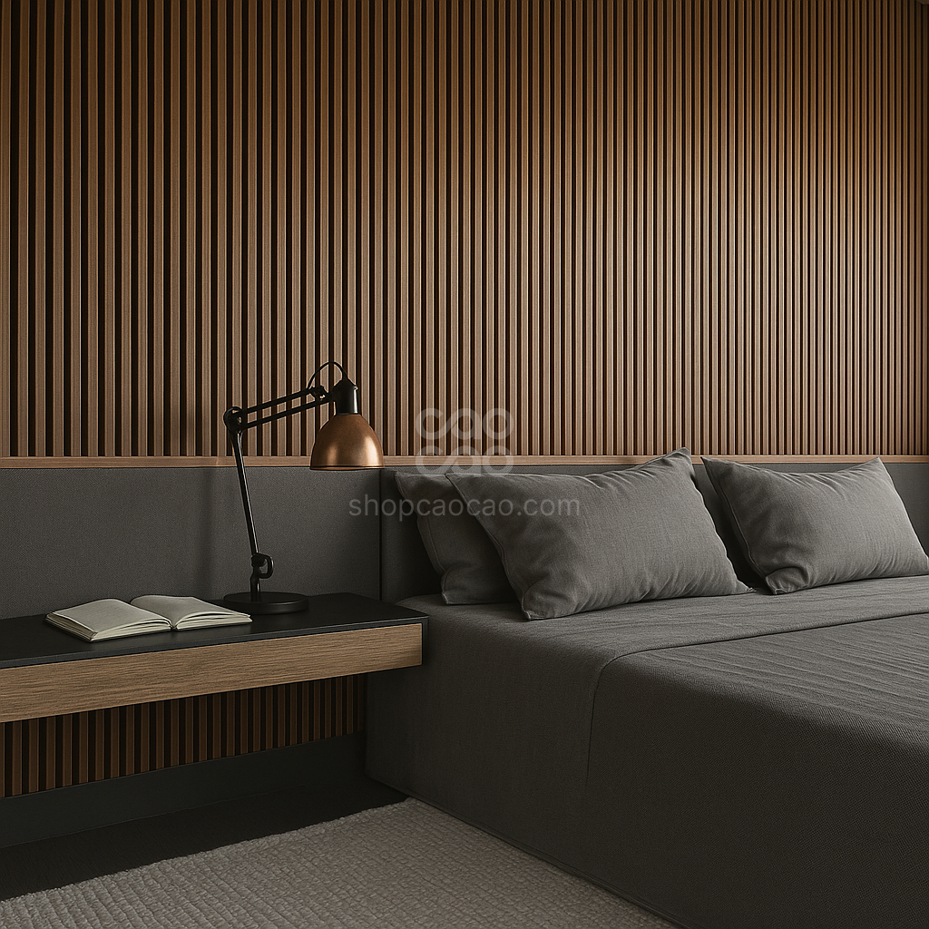Lambrín de Interior. El panel WPC para interiores está compuesto por un 60% de resina de madera y un 40% de PVC, y está acabado con un revestimiento de alta calidad que ofrece texturas realistas y colores sólidos para adaptarse a cualquier estilo de decoración.