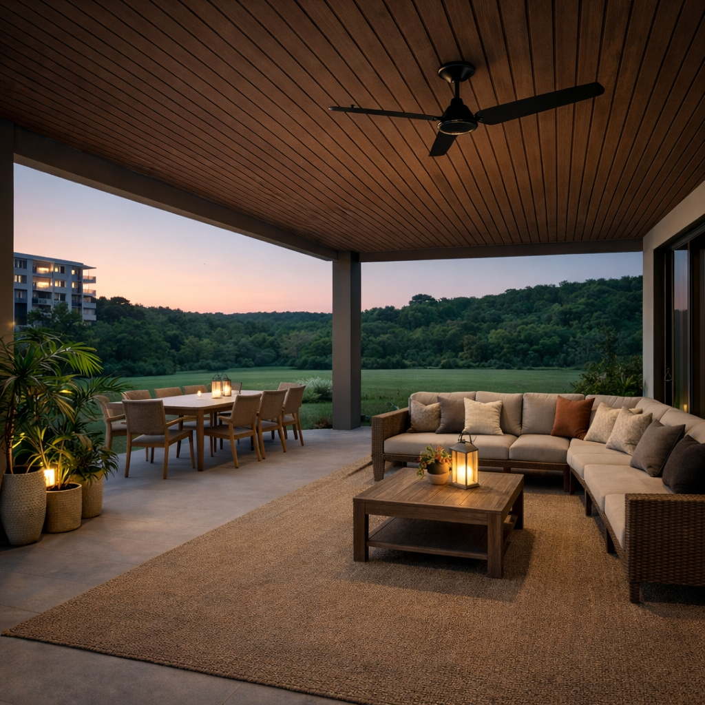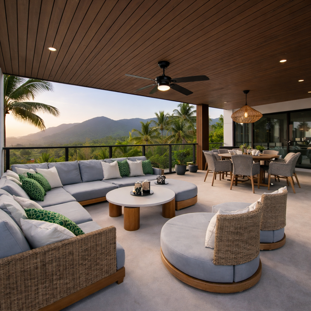 Esta composición lo hace altamente resistente a climas extremos, incluyendo sol intenso, lluvia, nieve y temperaturas elevadas. Ideal para terrazas, jardines, áreas de piscina y otros espacios exteriores.