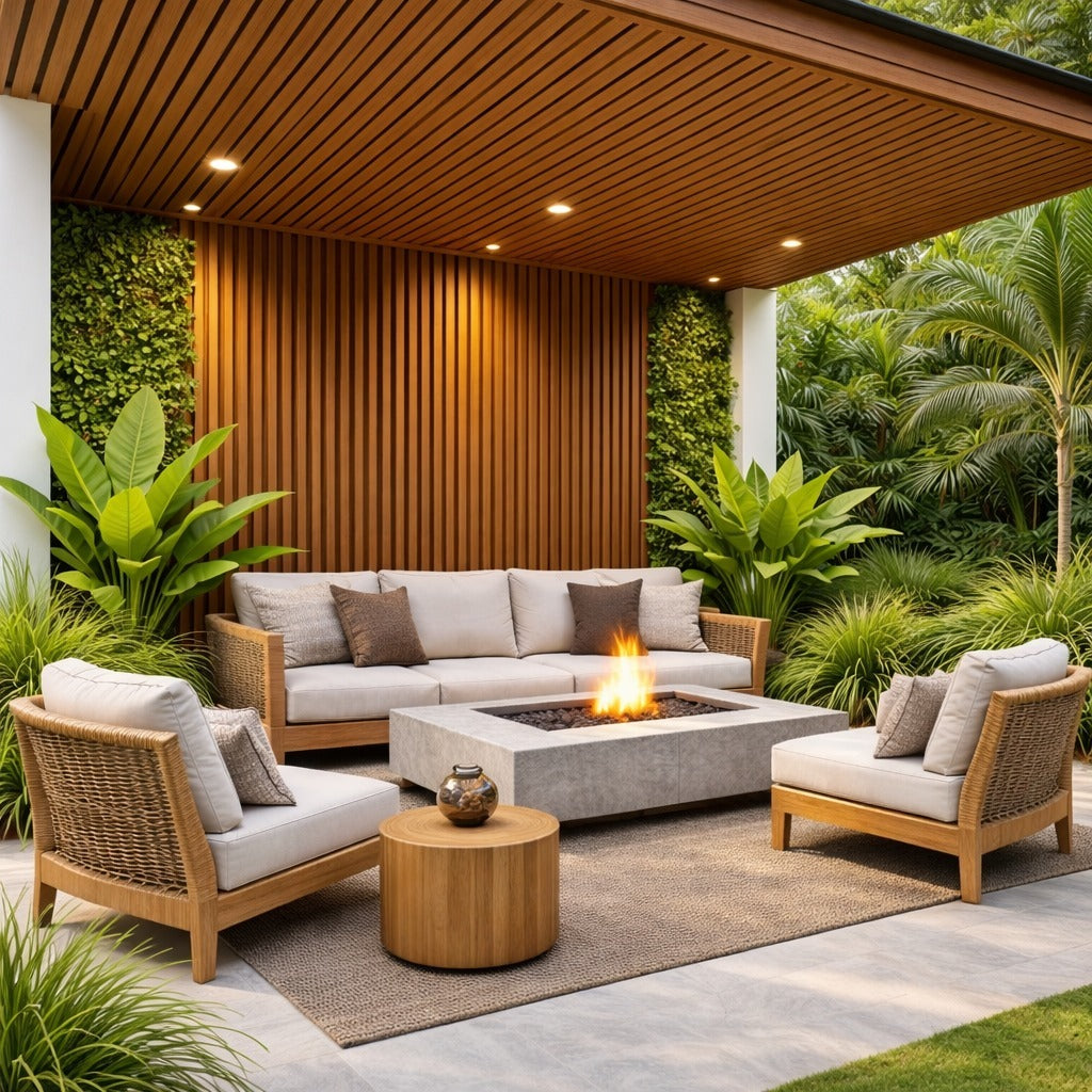 Esta composición lo hace altamente resistente a climas extremos, incluyendo sol intenso, lluvia, nieve y temperaturas elevadas. Ideal para terrazas, jardines, áreas de piscina y otros espacios exteriores.