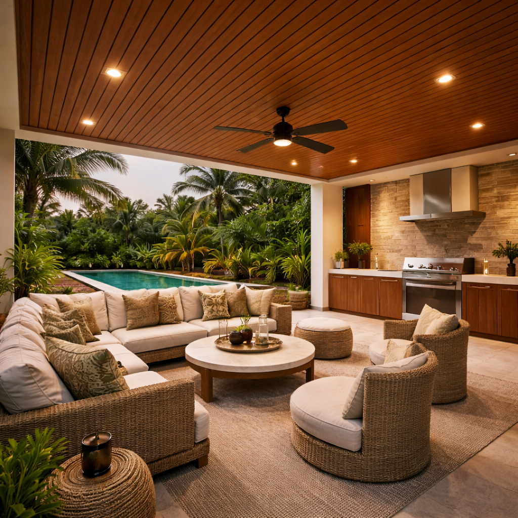 Esta composición lo hace altamente resistente a climas extremos, incluyendo sol intenso, lluvia, nieve y temperaturas elevadas. Ideal para terrazas, jardines, áreas de piscina y otros espacios exteriores.