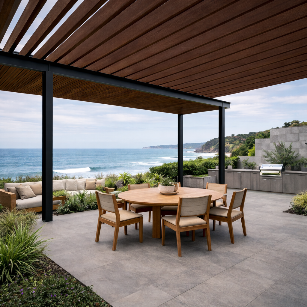 Esta composición lo hace altamente resistente a climas extremos, incluyendo sol intenso, lluvia, nieve y temperaturas elevadas. Ideal para terrazas, jardines, áreas de piscina y otros espacios exteriores.