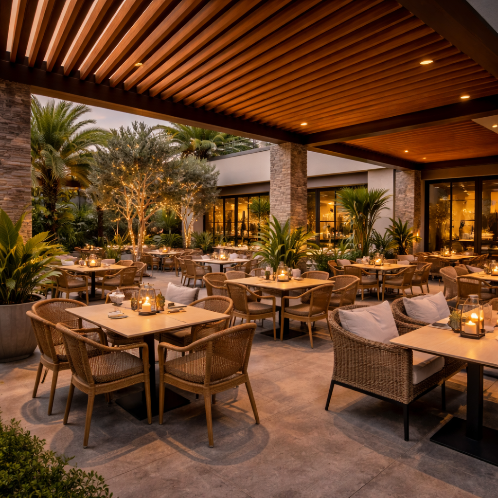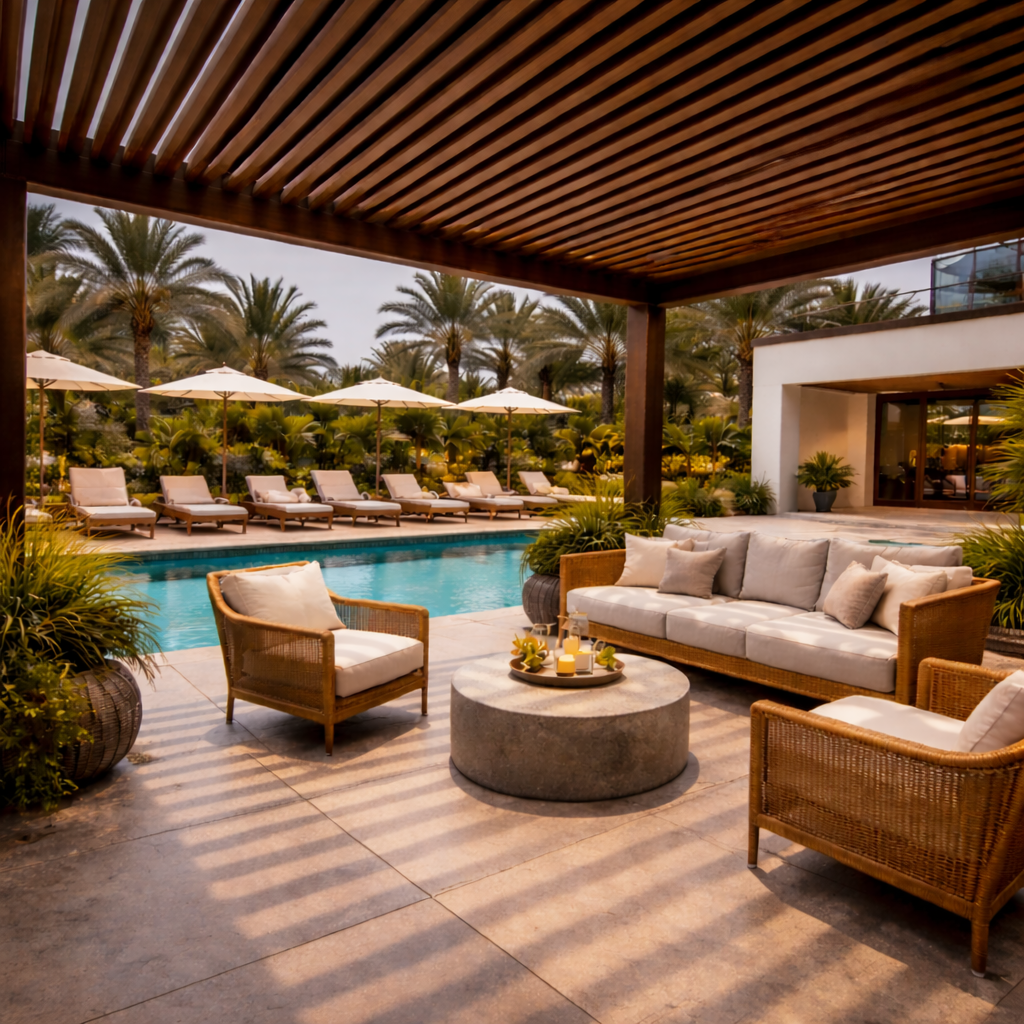 Esta composición lo hace altamente resistente a climas extremos, incluyendo sol intenso, lluvia, nieve y temperaturas elevadas. Ideal para terrazas, jardines, áreas de piscina y otros espacios exteriores.