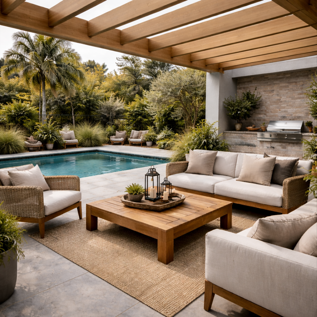Esta composición lo hace altamente resistente a climas extremos, incluyendo sol intenso, lluvia, nieve y temperaturas elevadas. Ideal para terrazas, jardines, áreas de piscina y otros espacios exteriores.