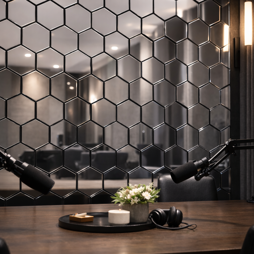 Nuestro panel acústico hexagonal con acabado espejo combina diseño, textura y funcionalidad acústica en una sola pieza. Su forma hexagonal permite crear composiciones visuales únicas, mientras que su acabado tipo espejo aporta profundidad, luminosidad y un toque moderno a cualquier espacio.