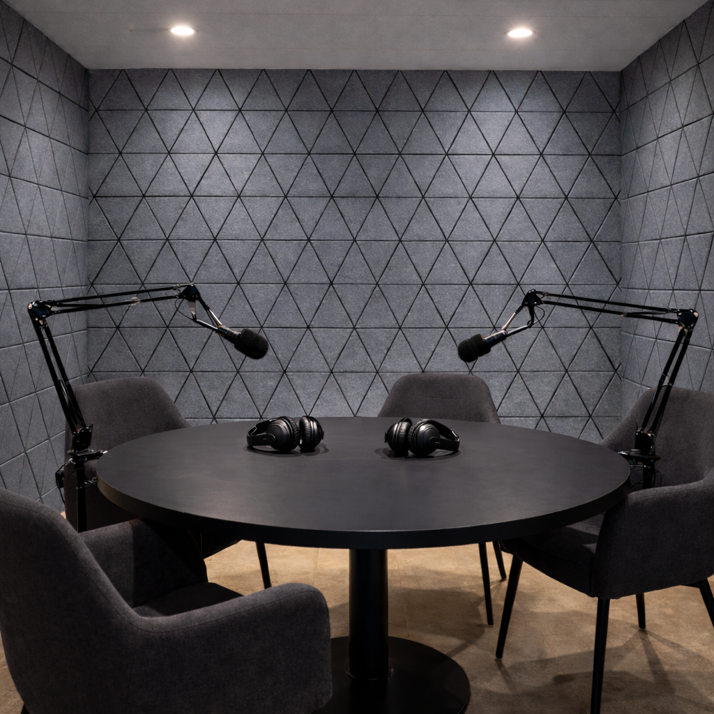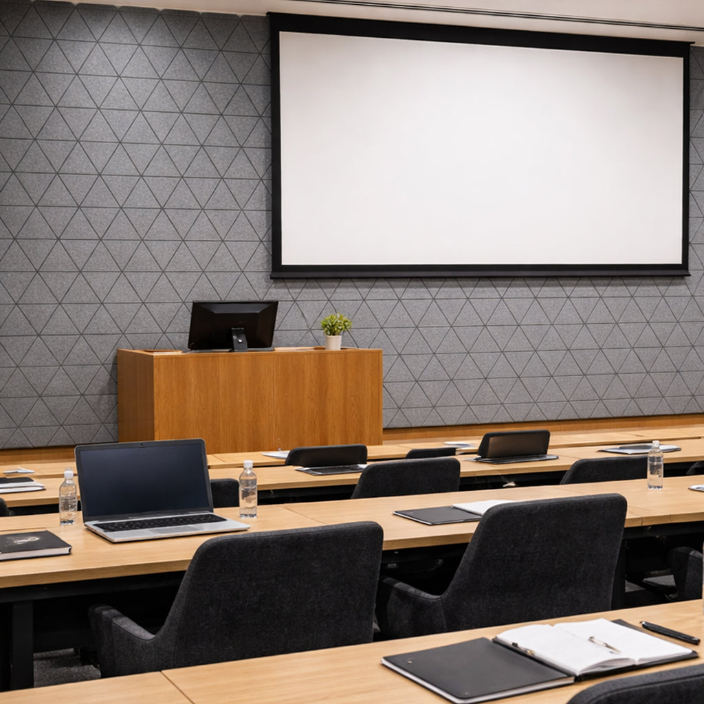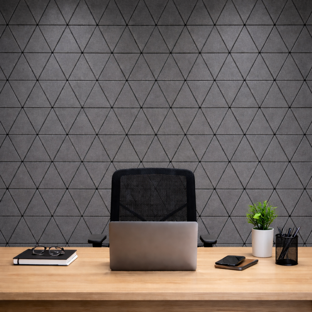 Nuestro lambrín acústico Láser Trion destaca por su patrón triangular de líneas finas que crea un efecto visual moderno y geométrico. Su diseño aporta profundidad y dinamismo al espacio, ayudando a distribuir y absorber el sonido de manera uniforme. Es ideal para oficinas, auditorios, estudios o cualquier entorno que busque una atmósfera profesional y equilibrada acústicamente.