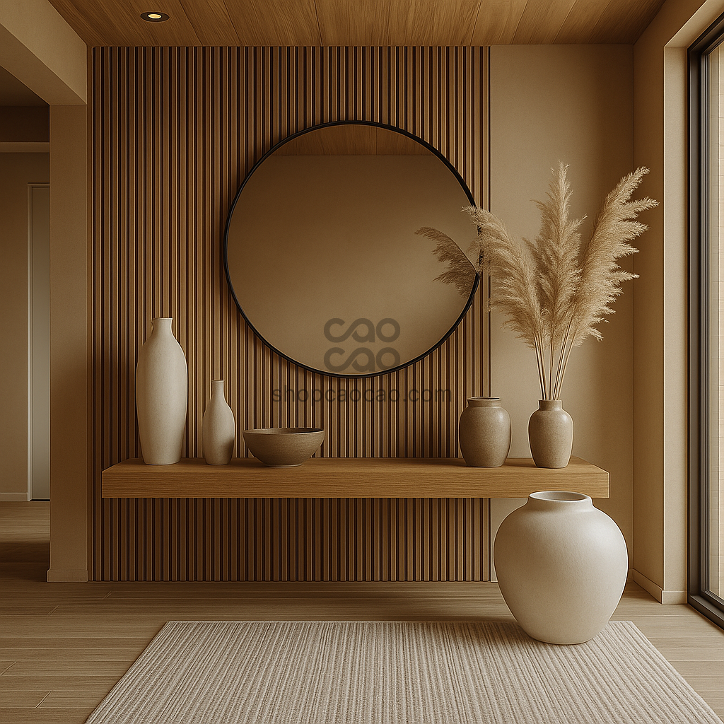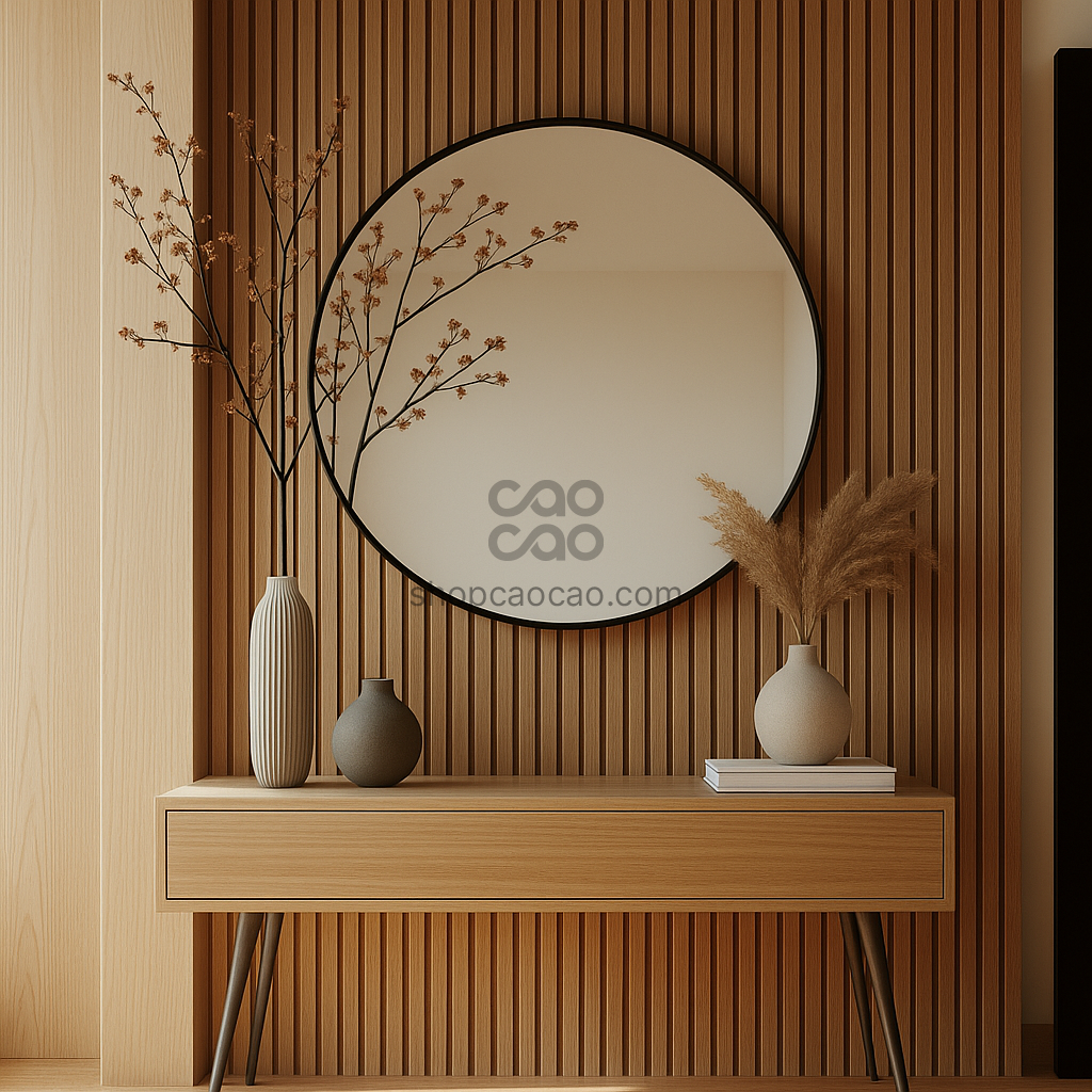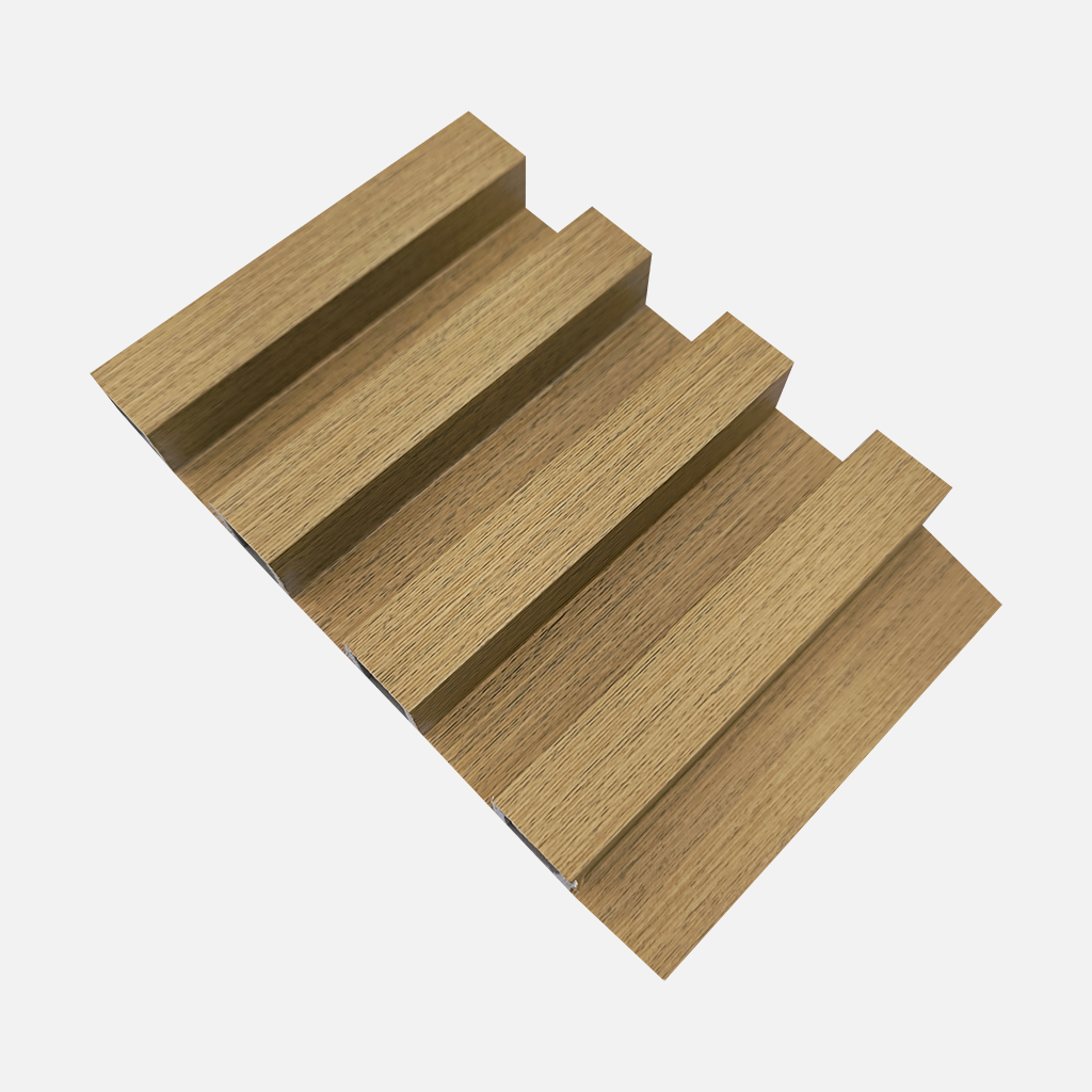 Lambrín de Interior. El panel WPC para interiores está compuesto por un 60% de resina de madera y un 40% de PVC, y está acabado con un revestimiento de alta calidad que ofrece texturas realistas y colores sólidos para adaptarse a cualquier estilo de decoración.