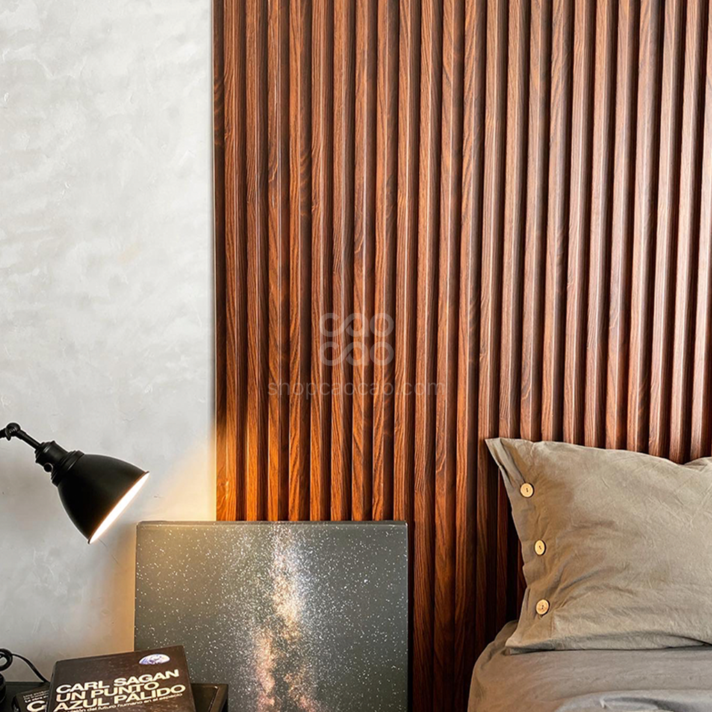 Lambrín de Interior Wide. El panel WPC para interiores está compuesto por un 60% de resina de madera y un 40% de PVC, y está acabado con un revestimiento de alta calidad que ofrece texturas realistas y colores sólidos para adaptarse a cualquier estilo de decoración.