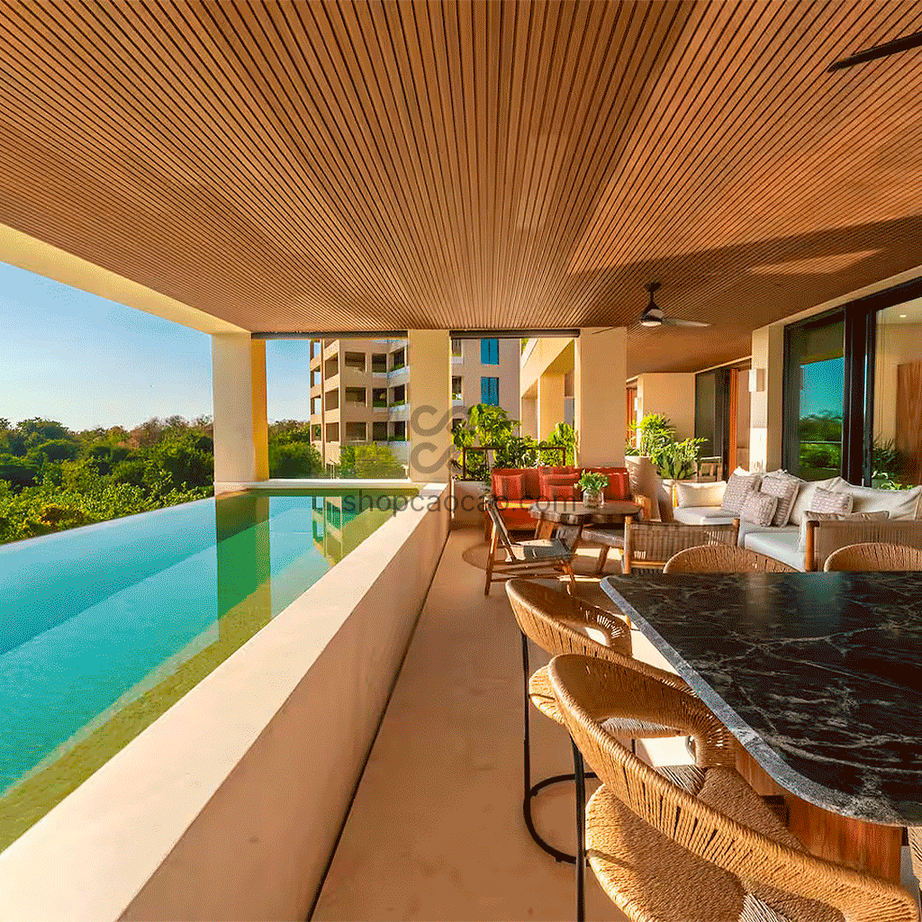 Esta composición lo hace altamente resistente a climas extremos, incluyendo sol intenso, lluvia, nieve y temperaturas elevadas. Ideal para terrazas, jardines, áreas de piscina y otros espacios exteriores.