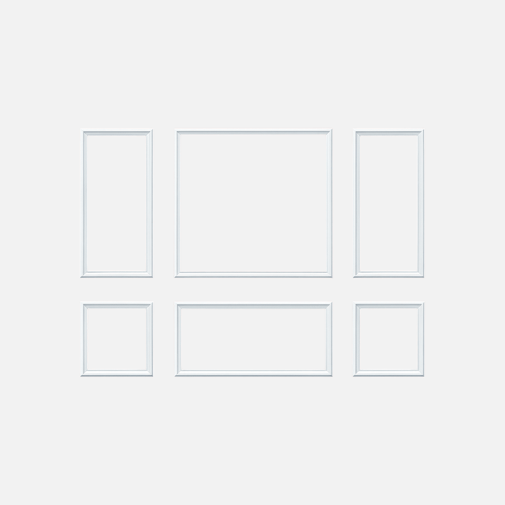 Incluye: 6 molduras de 1.46 m, 14 molduras de 57.5 cm, 4 molduras de 1.15 m, cada una con un ancho de 4 cm.